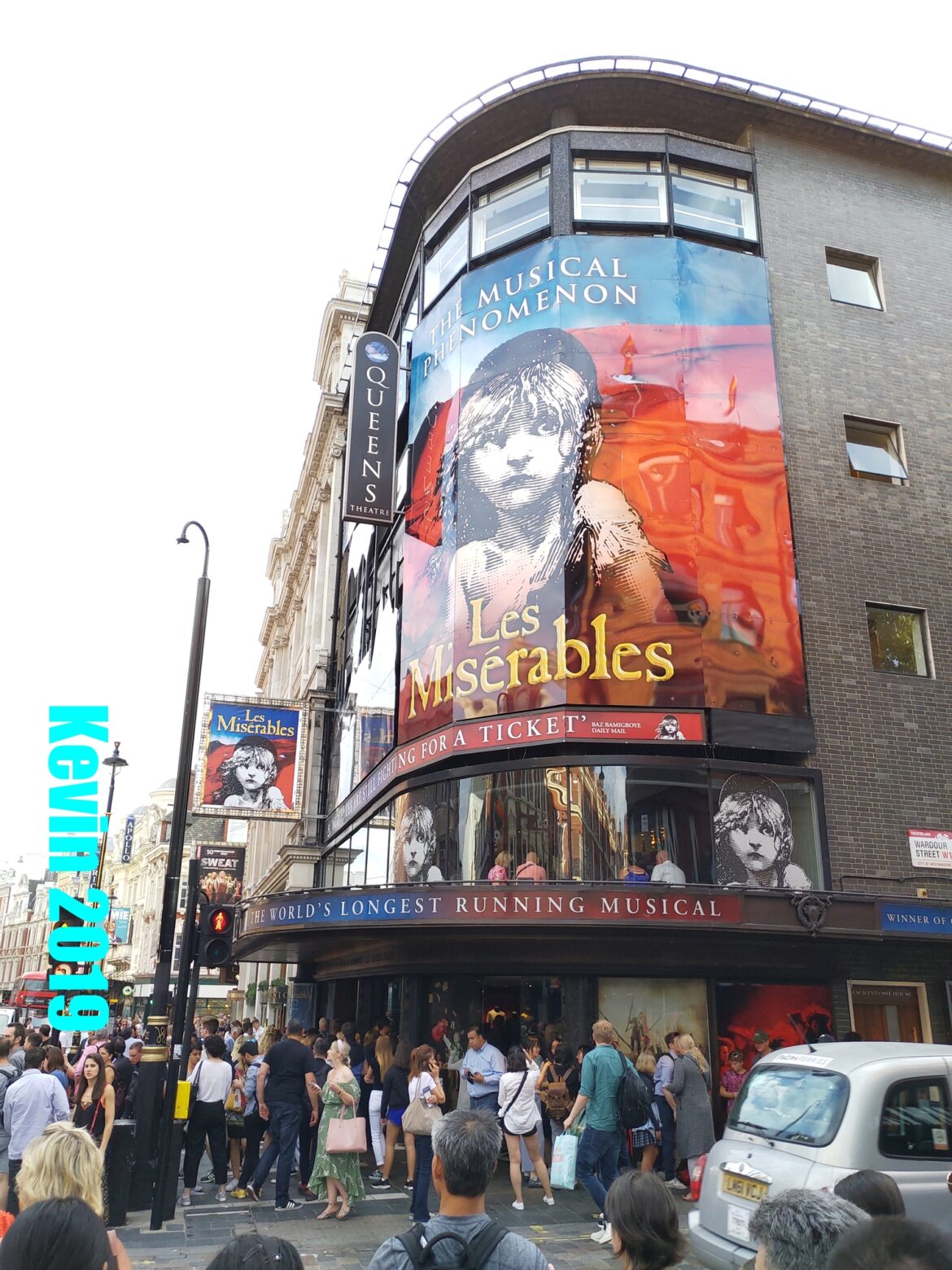 從牛津一日遊返回倫敦,終於抵達今晚的目的地-皇后劇院Queen’s Theatre ,劇院於1907年開張,坐在112年的古蹟內看小說家-雨果,描寫230年前法國大革命的故事背景,在劇院門前就肅然起敬。